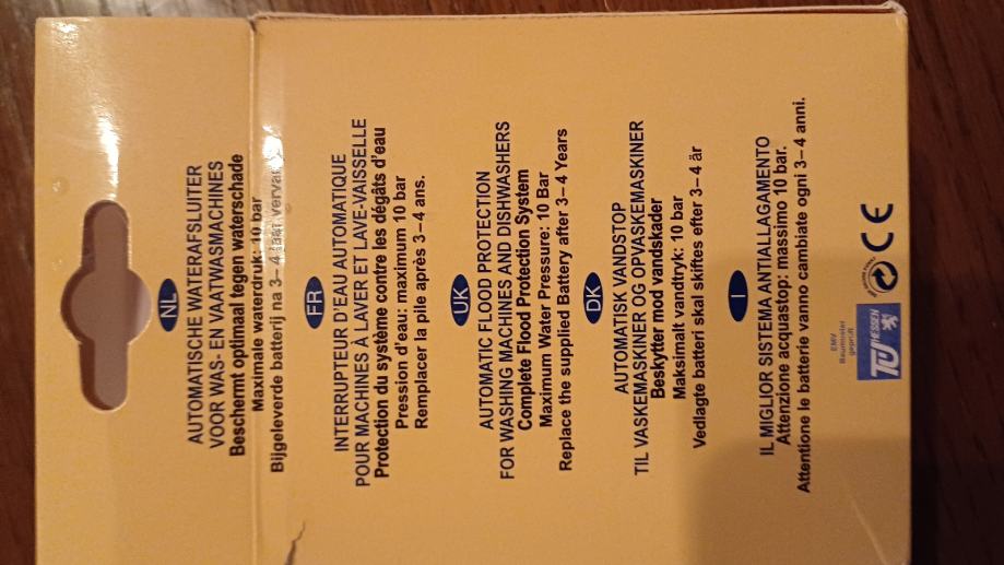 Sigurnosna blokada dovoda vode pri curenju iz kućanskih aparata (perilica rublja ili posuđa, a reagira i na vlažnu maramicu), prikaz principa rada (aktiviranja) imate u priloženom video isječku. Spojnice su standardne 1/2 cola. Radi na jednu AA bateriju koju trebate (moje mišljenje, radi sigurnosti) svako 12 mjeseci zamijeniti. Iako proizvođač deklarira i duži period.