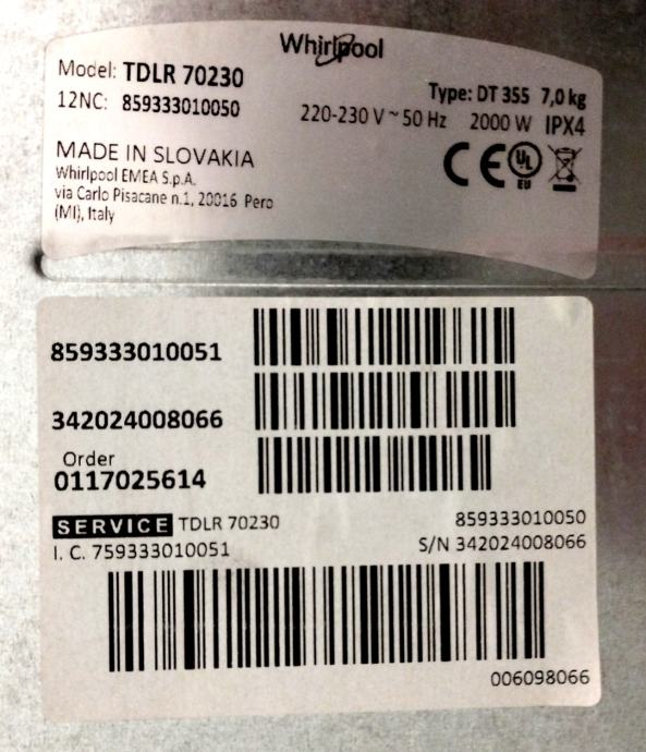 Posve funkcionalna perilica rublja, uska (40cm), gornje punjenje, 7kg.