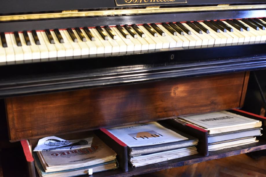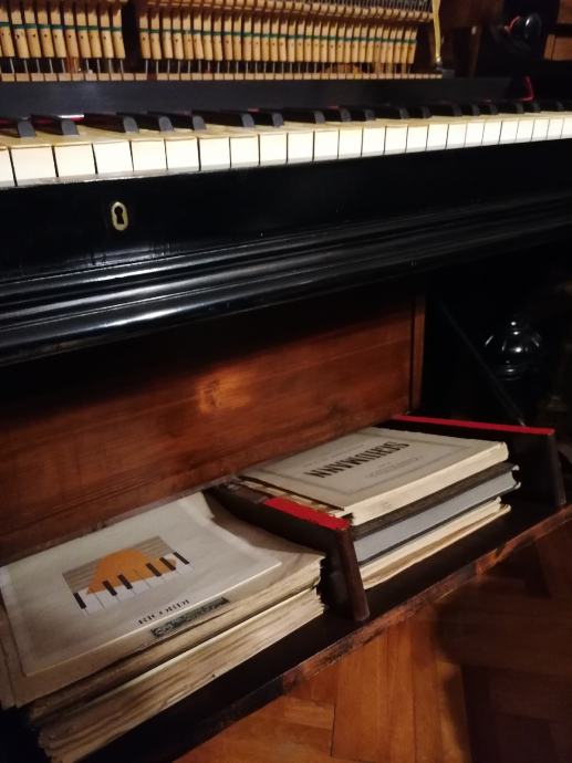 Interesantno je da ovaj pianino ima na doljnjem poklopcu pretince gdje se može spremiti dosta nota.