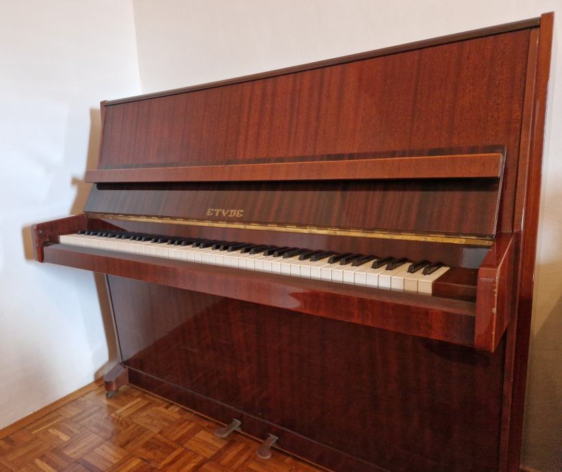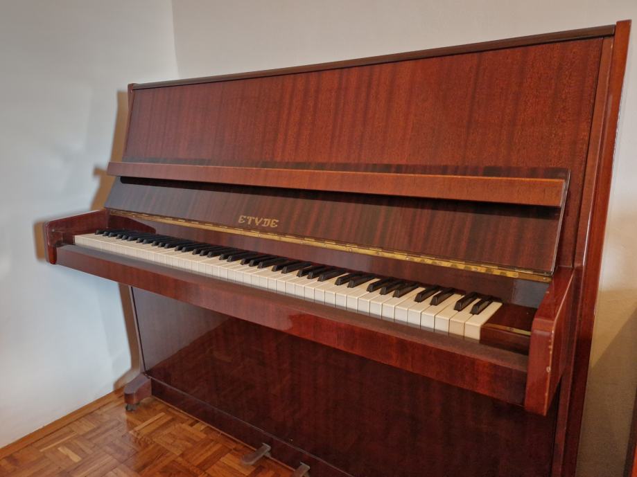 Prodajem pianino marke Etyde, malo korišten, očuvan i u dobrom stanju. Pohranjen u prostoriji na sobnoj temperaturi, bez vlage i klimauređaja, pogodnoj za unutarnji mehanizam. Za dodatne informacije, molimo kontaktirati na broj mobitela 099 647 4432.