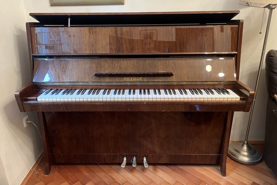 Prodajem Petrof pianino s 3 pedale u odličnom stanju. Pažljivo je čuvan, u potpunosti funkcionalan a mehanika i tipke rade savršeno. Lakirano kućište visokog sjaja, tri pedale uključujući i srednju (sostenuto/tihi pedal) - idealno za vježbanje u stanu.