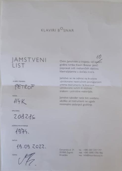 Prodajemo pianino PETROF, zajedno sa stolicom, kupljen 2022, kompletno restauriran prije 2 godine.
