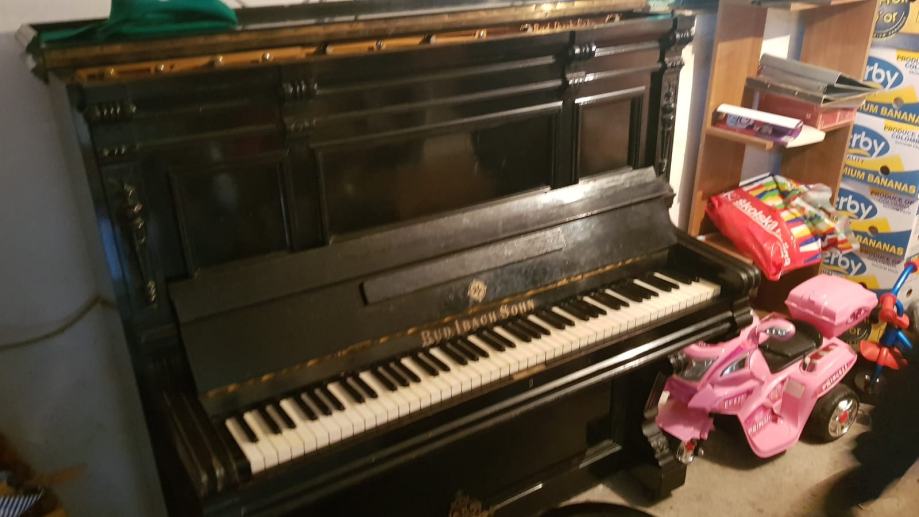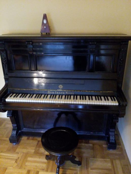 Prodajem ovaj prekrasan pianino marke "Rud.I Bach Sohn". Proizveden 1896. godine, u potpunosti ispravan, cjelovit, sa svim originalnim dijelovima. Pregledan od strane vrhunskog stručnjaka, majstora-servisera. Potrebno mu je ugađanje žica, ali tek nakon selidbe u novi dom. Stolica i metronom su u kompletu sa pianinom. Cijena nije fiksna.