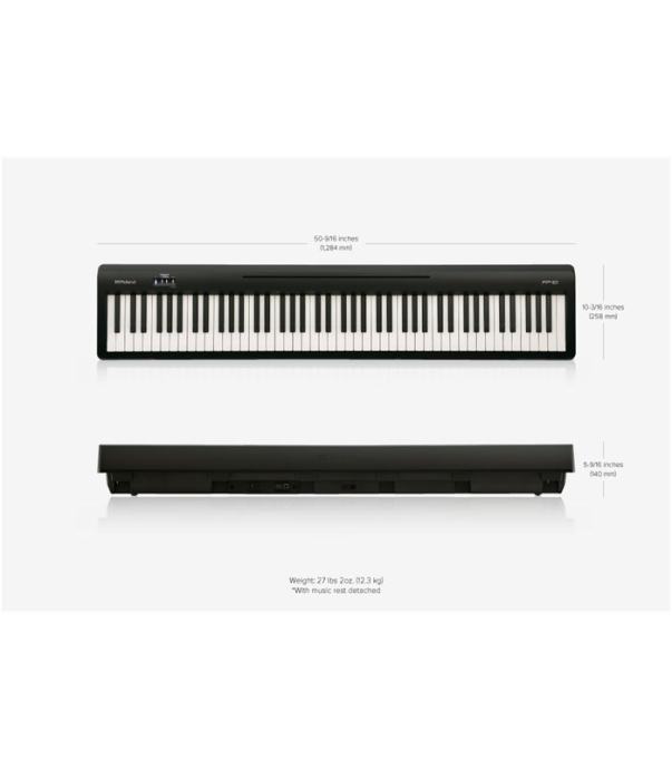 Uvijek ste željeli 88 tipki na vašem pianinu ali nemate dovoljno prostora kod kuće. Roland FP-10 je vaše rješenje! Najkompaktniji digitalni pianino sa 88 tipki u svojoj klasi, dimenzije FP-10 su samo 1284 x 258mm (širina/dubina) tako da ga možete smjestiti bilo gdje. Za još bolju fleksibilnost, koristite stalak ili postignite autentičan izgled pianina sa KSCFP-10 stalkom.
