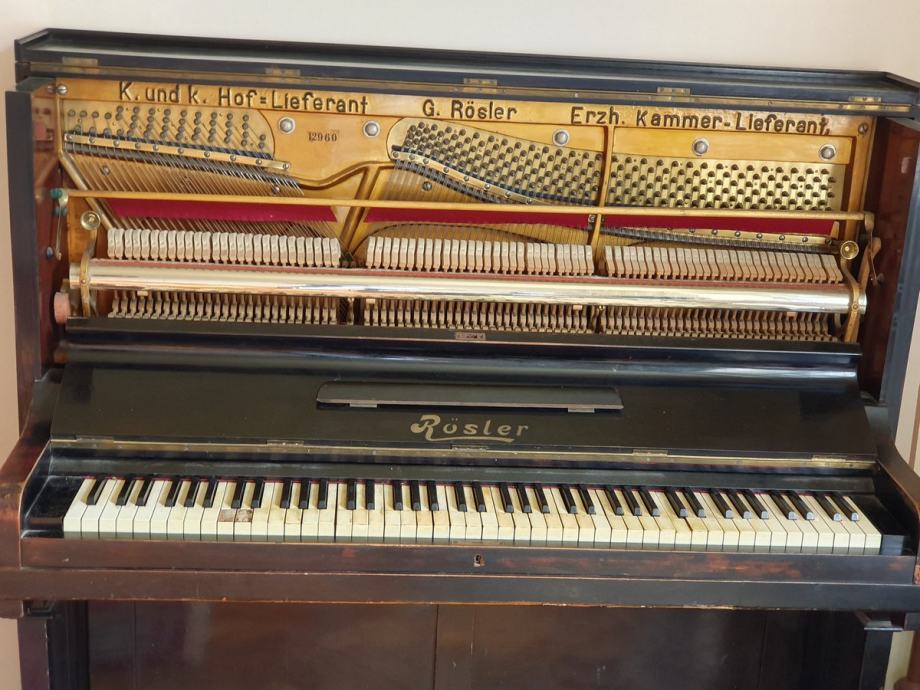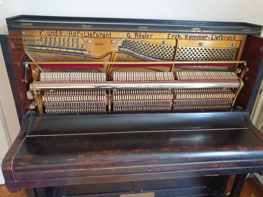 Hitno prodajem piano Gustav Rösler godine 1890-1900., metalne konstrukcije -odlično sačuvane, K.U.K. HOF LIEFERANT.