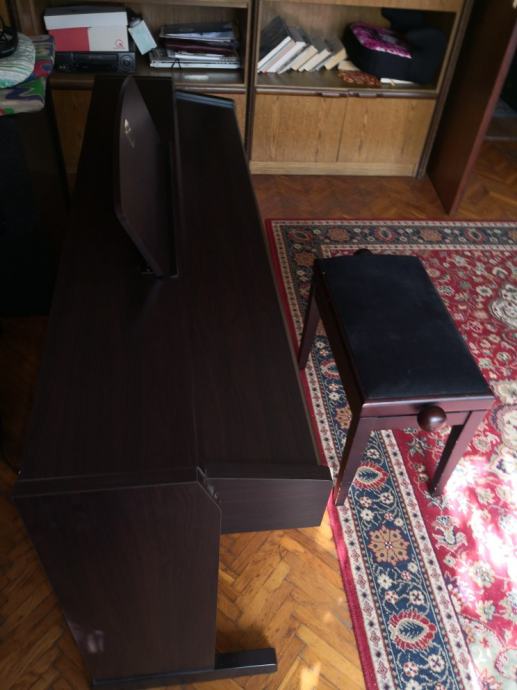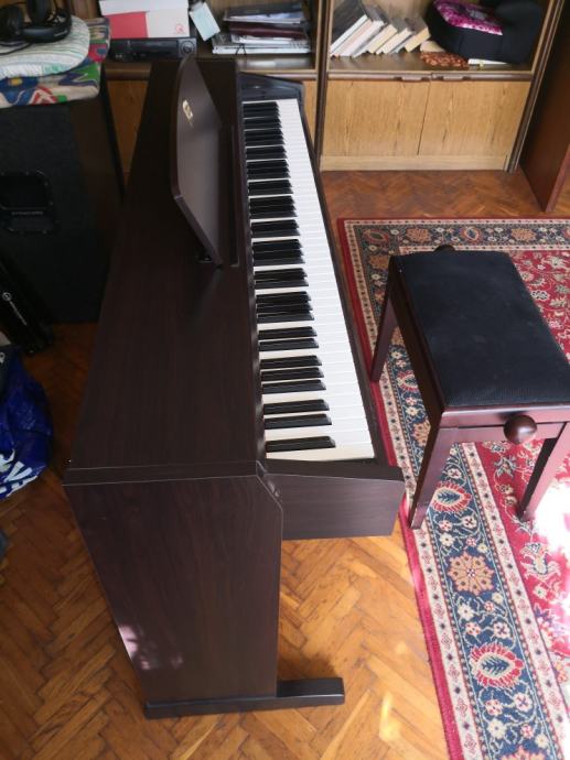 Elektricni vrhunski klavir boja ružino drvo,potpuno je ispravan i nema znakova kotistenja na njemu, uz klavir ide podesavajuca klavirska klupa instrument sa 64 polifona zvuka, hamer mehanicka tipka, kupljen 2014 godine, jako malo svirano... Novi je 11000kn