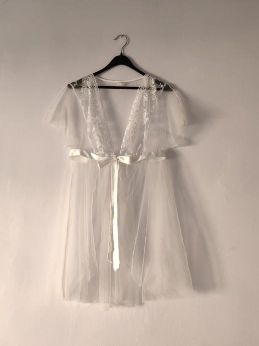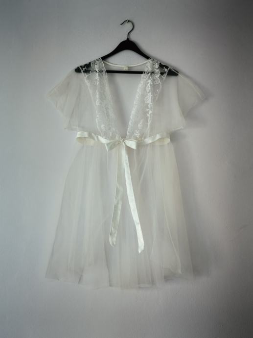 Čipkasti ogrtač odgovara za kučnu upotrebu ili noćne zabave, zatvara se samo na trakice, prozirna je