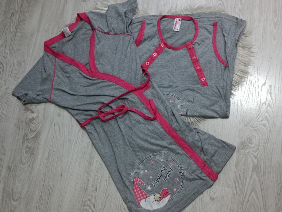3. Sivo-rozi set spavaćice bez rukava i ogrtača s kratkim rukavima deklarirano XL, ali manji (po meni S/M) - 10€