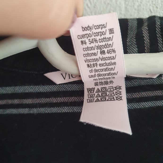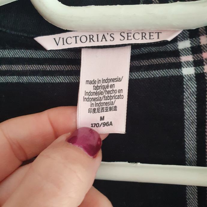 Gornji dio pidžame Victoria's secret M. Mjere su ramena 48 cm, prsa 55 cm, rukavi 56 cm, dužina naprijed 64 cm, dužina iza 67 cm. Sastav je 54% pamuk, 46% viskoza.