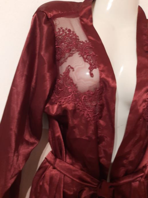 Bordo crveni ženski ogrtač u kombinaciji čipke i satena. Jednom obućeni, kao novi. Vel. 38