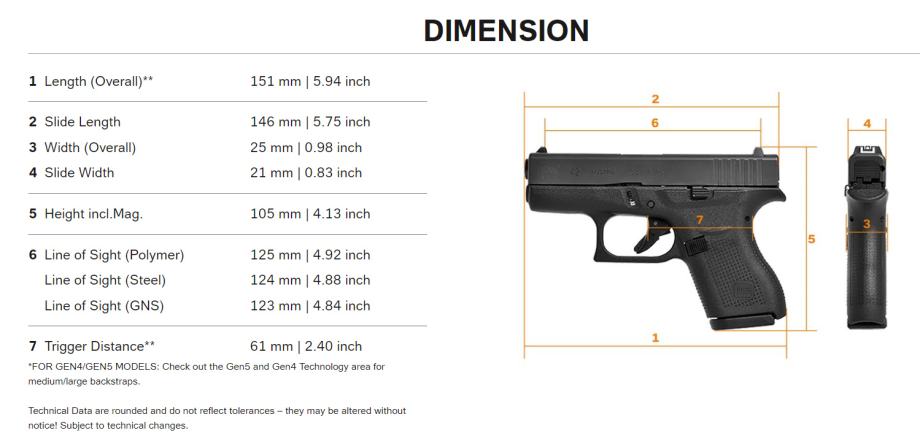 SPECIFIKACIJE PIŠTOLJA GLOCK G42: