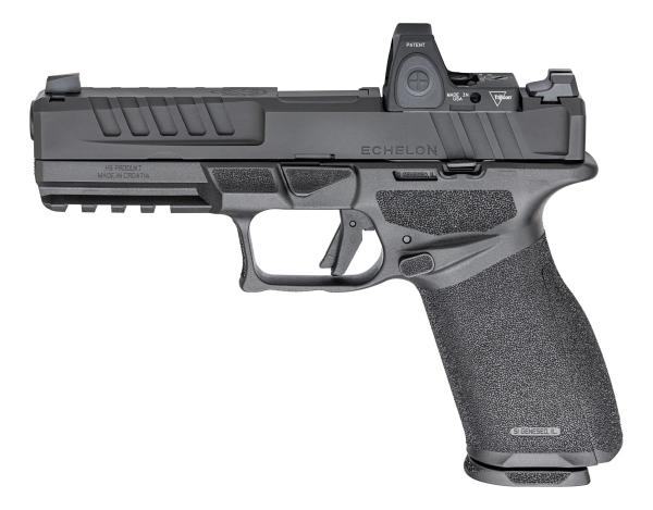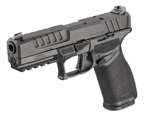 HS Produkt Echelon pištolj 9x19mm 3-dot tritium jednako je prilagođen dešnjacima i ljevacima. Kontrole za otpuštanje navlake zatvarača i spremnika nalaze se s obje strane pištolja.