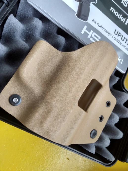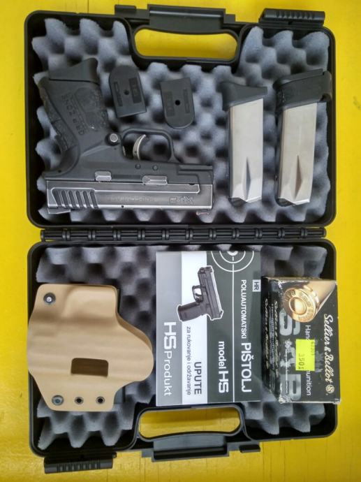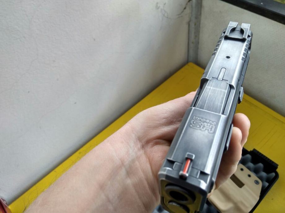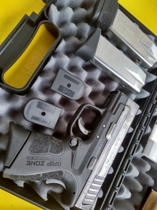 Prodajem navedeni pištolj star oko pola godine, odlično stanje. Stavljen battleworn finiš. Dolazi sa jednim dugim i dva kratka spremnika koji imaju Pearce grip ekstenzije, custom Kydex futrolom, opremom koja dolazi pri kupnji (kutija, papirologija, set za čišćenje), kutijom FMJa i kutijom HPa.