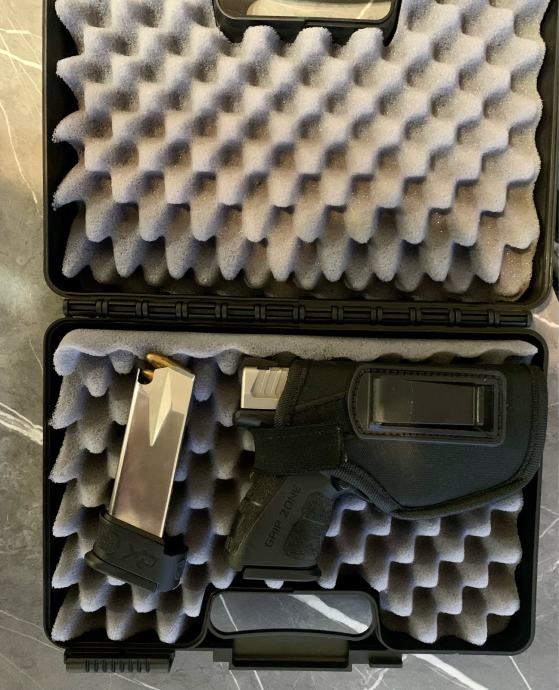Pistolj je doslovno kao iz ducana, nema ni crtice na sebi, ispaljen mozda 1 okvir iz njega. Kupljen u Rusanu nikad ni nošen u lov. Cijena je fiksna zamjena moguca jedino za neki “mini”revolver novije proizvodnje staro oruzije me ne zanima. Uz njega idu dva okvira 13 i 16 kom i futrola za skriveno nošenje. Samo uz nabavnu dozvolu.