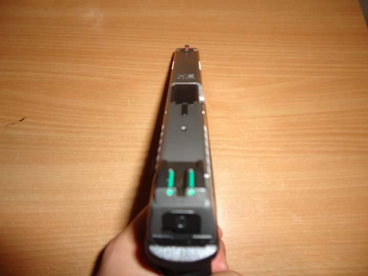Tvornički montirani micro optički nišani (prednji crveni, zadnji zeleni) uz pištolj idu i originalni nišani.