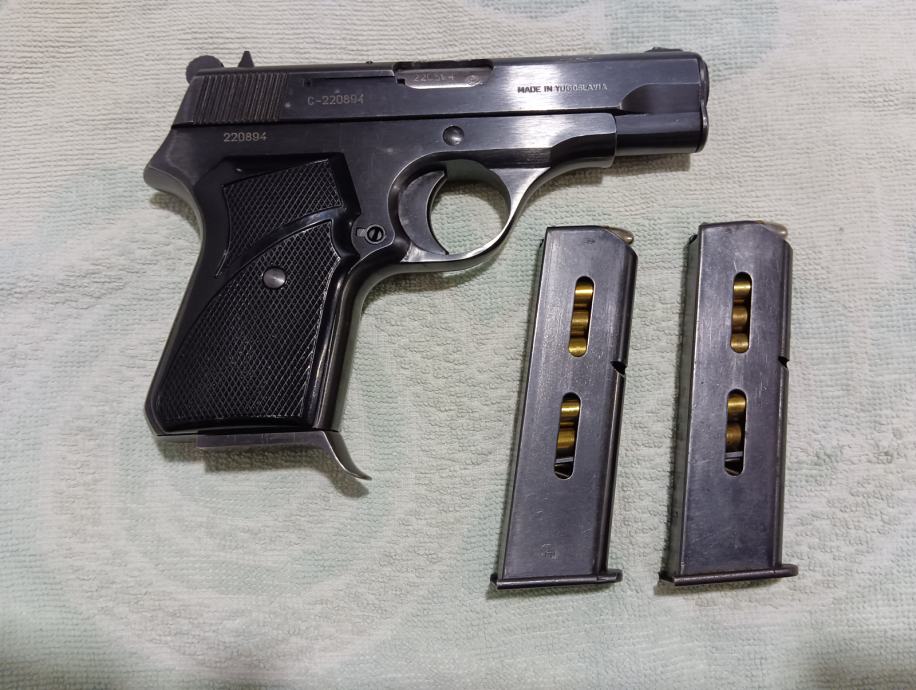 Prodajem pištolj Crvena zastava CZ M70, 7.65mm. Odlično stanje, gotovo da nije korišten, 3 spremnika, ergonomski dodatak na spremniku, 25 metaka.