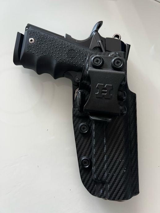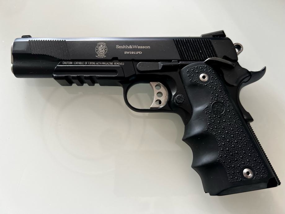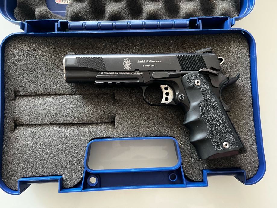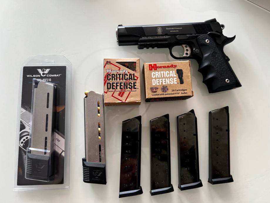 Prodaje se pištolj SW 1911 PD u kalibru .45 ACP. Original SW kutija, 5 komada McGear spremnika kapaciteta 8 metaka i 2 Wilson Combat spremnika kapaciteta 10 metaka, butna futrola Safariland ALS za desnjaka, Falco holster hibridna futrola, IWB futrolaIa, i 40 kom kvalitetnog streljiva Hornady Critical Defense sa FTX zrnom. Iz pistolja je ispucano 500 metaka. Sve navedeno je u stanju 10/10. Cijena fiksna. SAMO UZ NABAVNU DOZVOLU!!!!