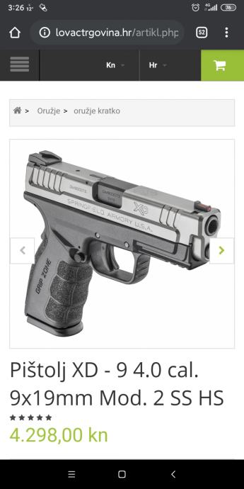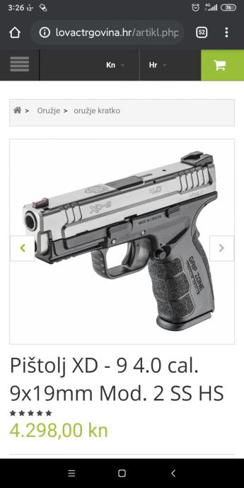 Cijena novog pištolja HS-9 Mod.2 Stainless Steel 4" u Lovac trgovini je 4.300 kuna.