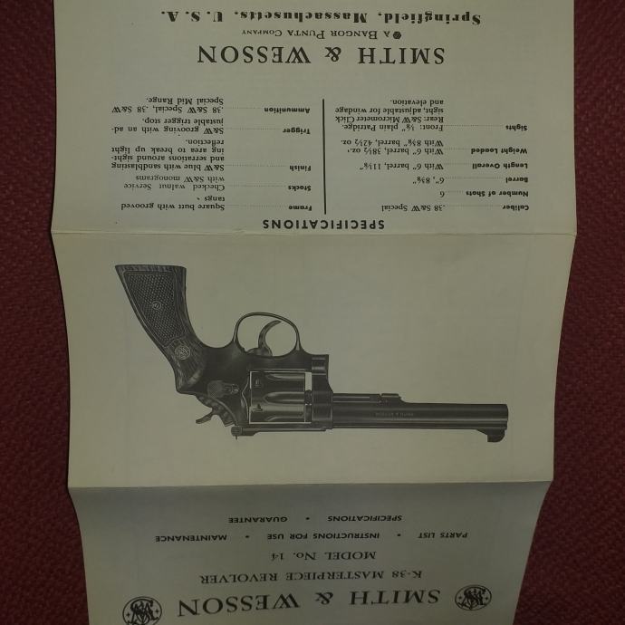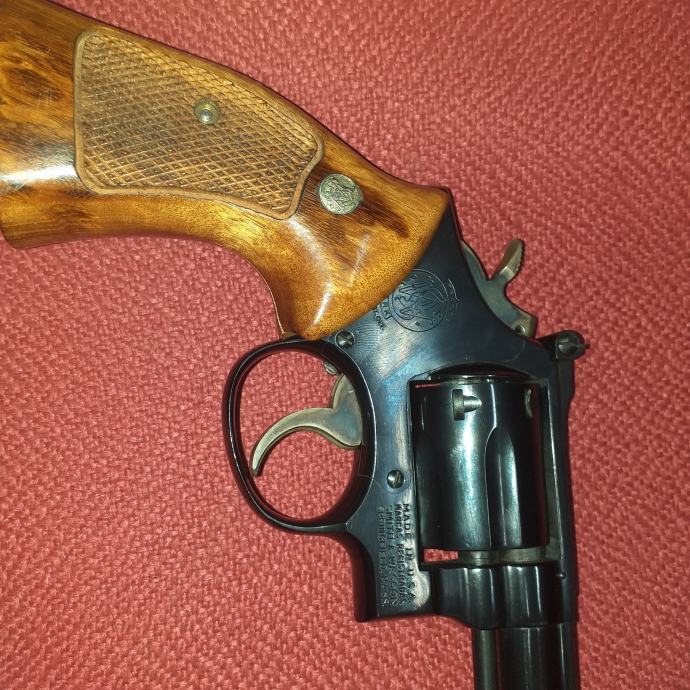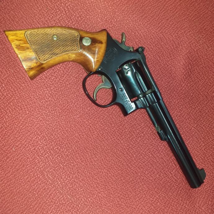 Imaocu odobrenja za nabavku oružja, prodajem revolver u super stanju S&W K-14 masterpiece, cal. 38 SPECIAL, 6'' cijev, podesivi zadnji ciljnik, trigger stop, target okidač i udarač, cijev u super stanju (Bore diameter = .346''), izuzetno precizan, perfektan timing bubnja, bez lufta, u originalnoj kutiji sa uputstvima.