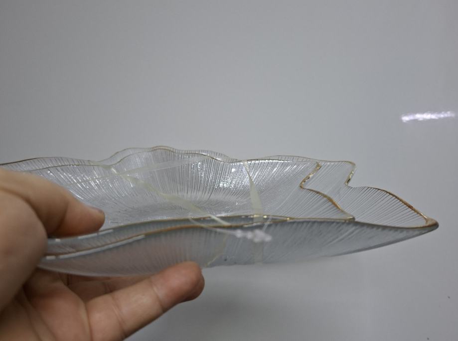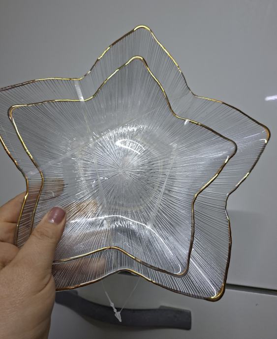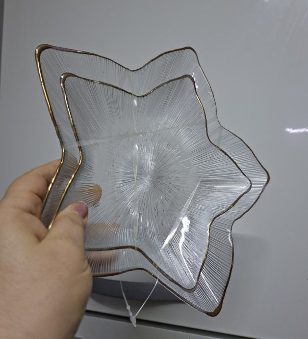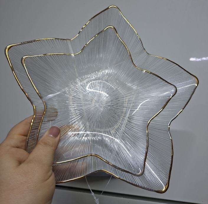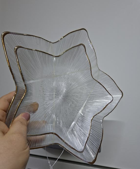2 kom STAKLENA PLADNJA U OBLIKU ZVIJEZDE S ZLATNIM RUBOM - NOVO
