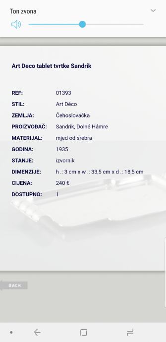 Dužina sa ručicama 43 cm x 21 cm x 1 cm dubine - (bez ručki 33,5 cm x 21 cm )- poleđina sa žigom