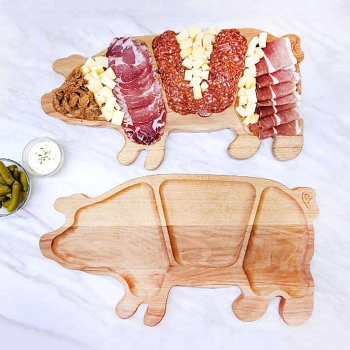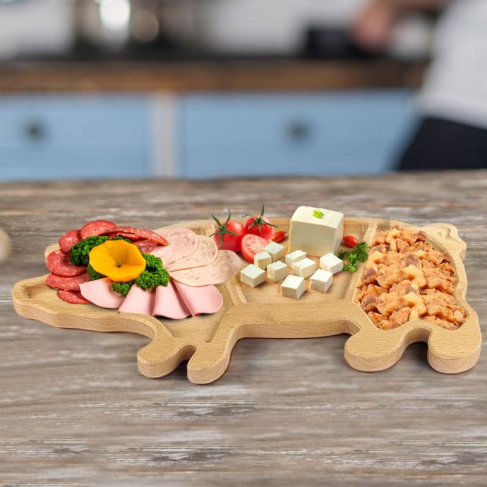 Daska drvena za posluživanje u obliku praščića korisna je za posluživanje narezaka, sireva, mesa ili drugih jela na stolu.