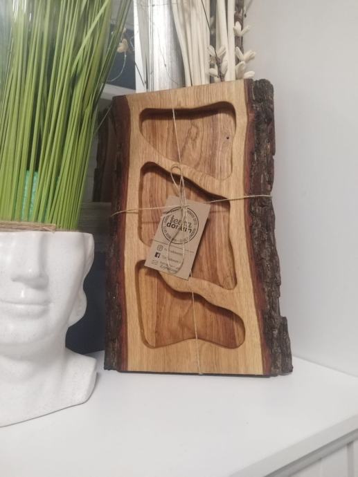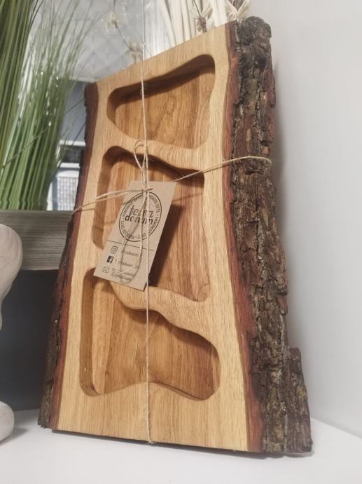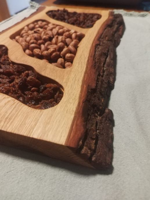 Daska za posluživanje hrane od hrasta s prirodnim završetkom bez drški i s utorima za hranu