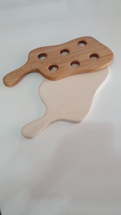 Razne daske za rezanje, daske za sluzenje aperitiva, sinije, daske za sječenje mesa, daske za služenje hrane, vinske police, nosaci vinskih čaša i boca, lusteri od greda ili fosni itd.