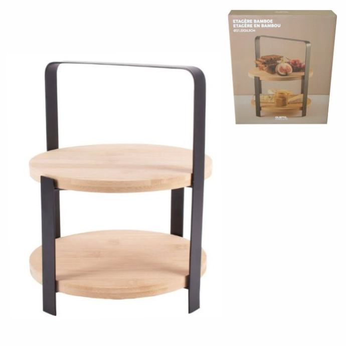 Glavne karakteristike etažera s dva nivoa izrađenog od bambusa s metalnim stalkom su: