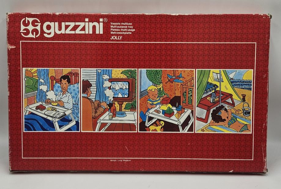 Guzzini "Jolly" poslužavnik iz 1980-ih koji je dizajnirao Luigi Massoni za poznatog talijanskog proizvođača Guzzini, hvaljenog po svojoj kvaliteti i bezvremenskom dizajnu raznih kućanskih proizvoda.