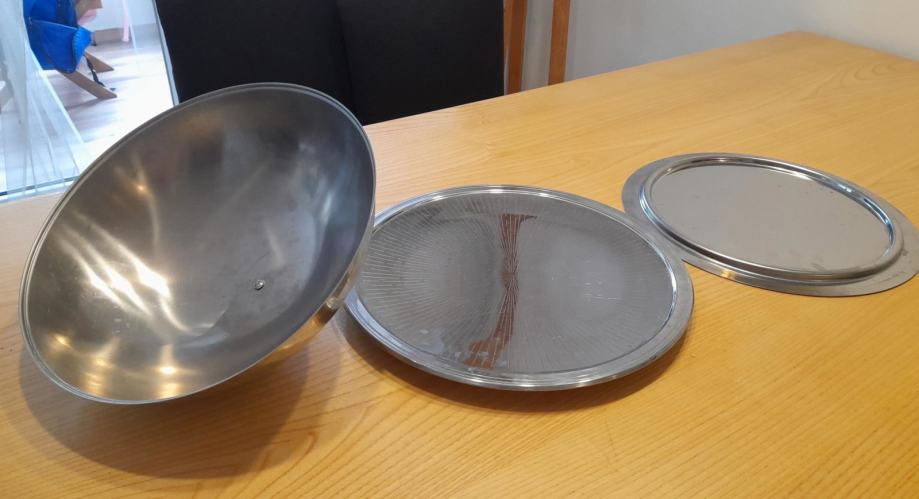 Inox okrugli dekorativni pladanj za posluživanje.