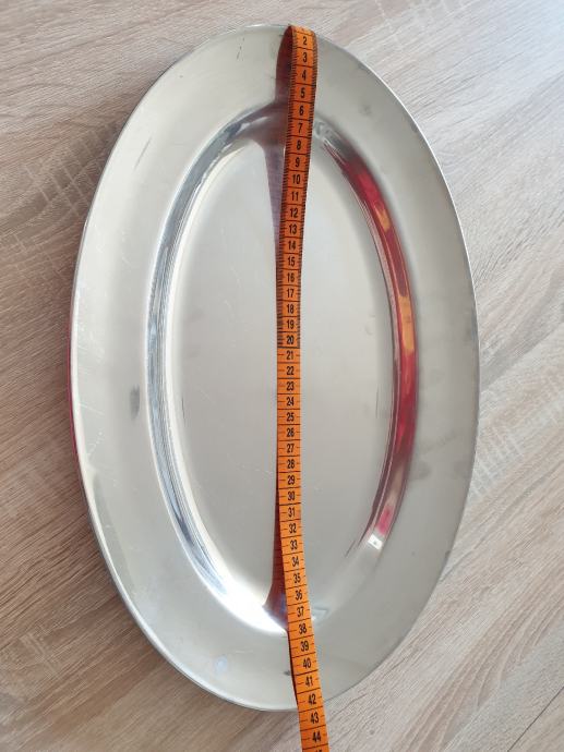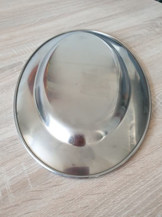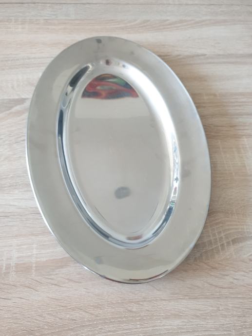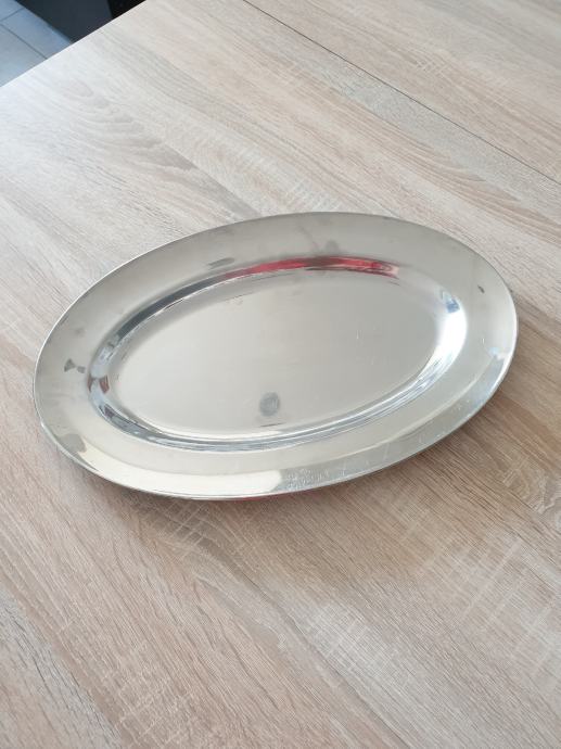 Ovalni inox pladanj za serviranje dužine oko 40 cm.