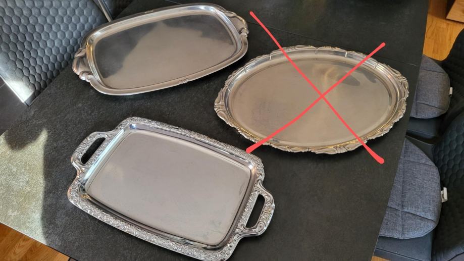 Prodajem kvadratne i ovalne inox pradnjeve za serviranje, tacne za serviranje.
