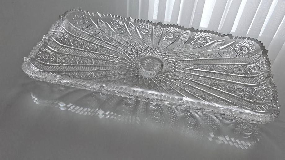 Dekorativna, kristalna, vrlo bogato gravirani pladanj.