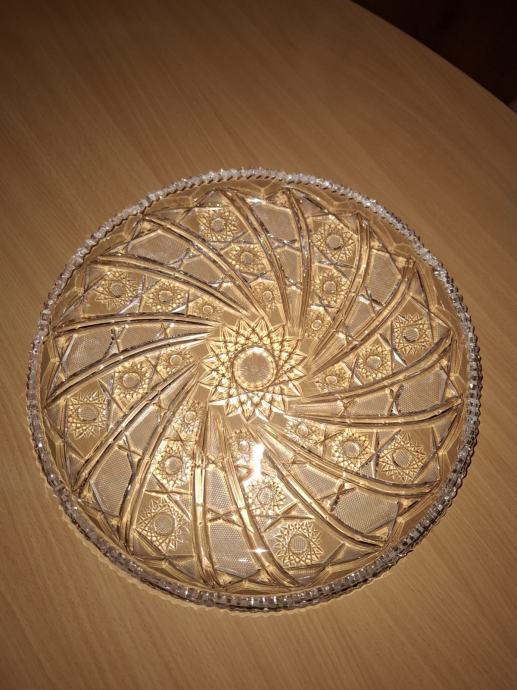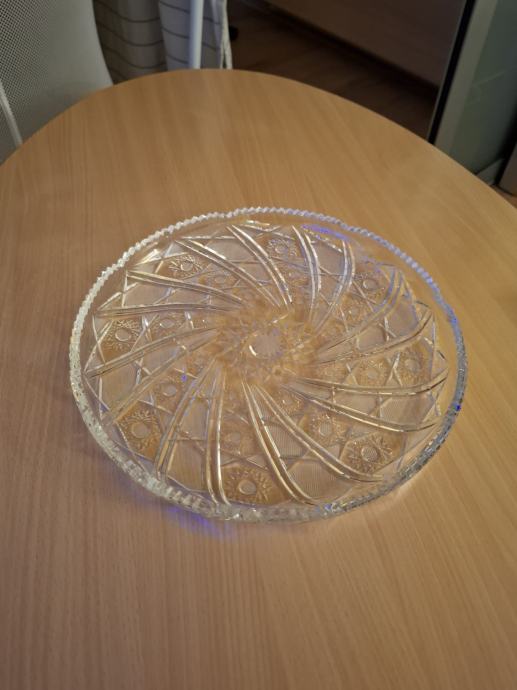 Stari kristalni pladanj, ima malih oštečenja ali ne kompromitira izgled pladnja jer se ionako teže uoči.