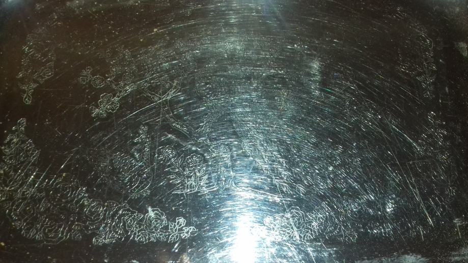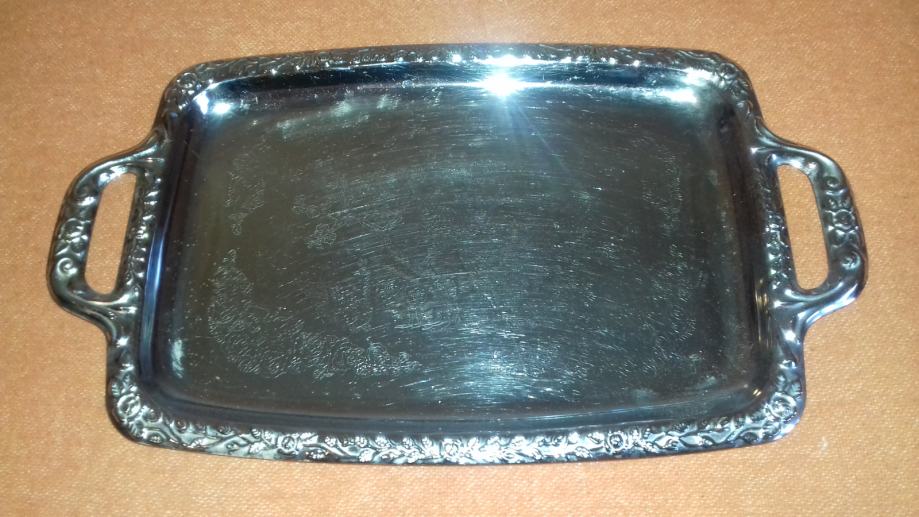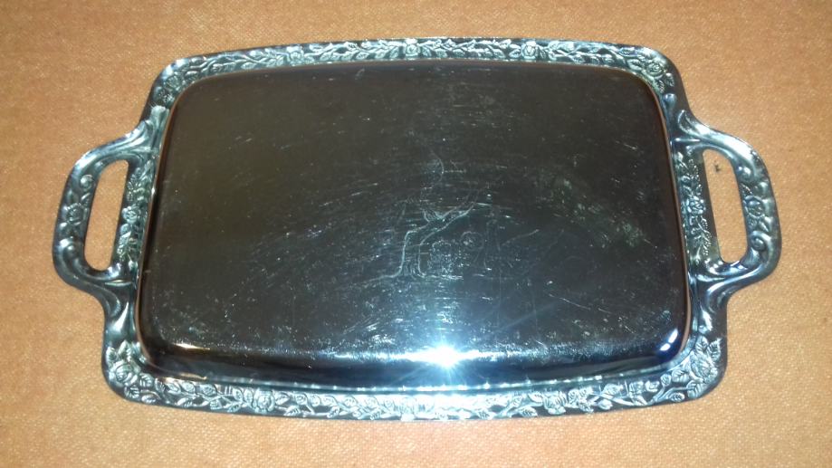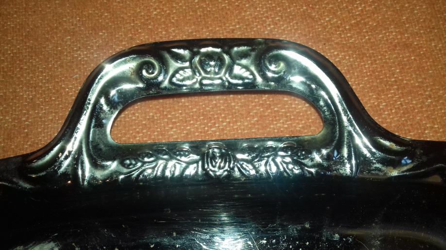 Metalni pladanj sa ručkama srednje veličine sa motivom pauna
