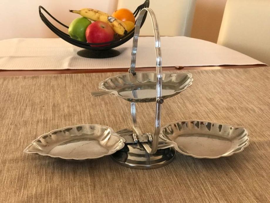 Mali pladnjevi koje dolaze u sklopivom postolju prikladne su za stalnu postavu sa slatkišima/ grickalicama Ili povremeno za dodatke jelima (masline, kiseli krastavci..) ili manje obroke.
