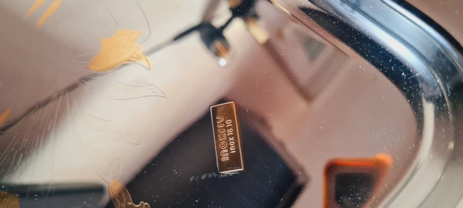 Pladanj, inox 18 / 10. Neupotrebljavano. Ručke su boje zlata, sa mramo