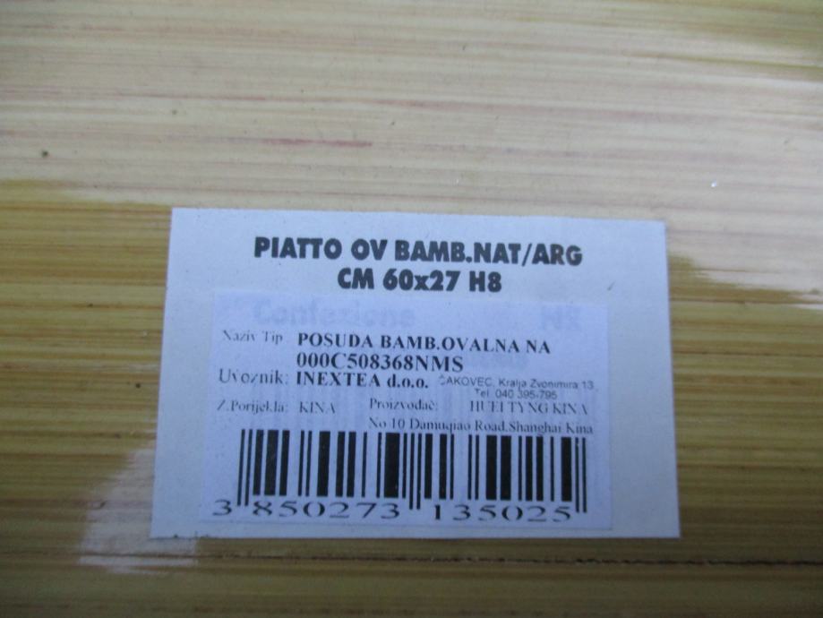 Prodajem ovalni pladanj od bambusa,stanje odlično.D-60cm, Š-27cm, V (dubina)-7cm.Cijena fiksna!Na sms poruke, Njuškalo poruke i mail-ne odgovaram!Samo pozivi na mob.(zvati poslje 15h).