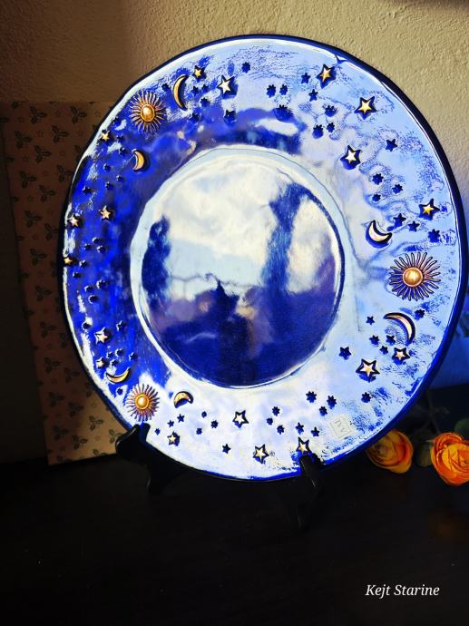 Dizajn: "Celestial" (nebeski) motiv s reljefnim i ručno oslikanim zlatnim suncima, polumjesecima i zvijezdama.