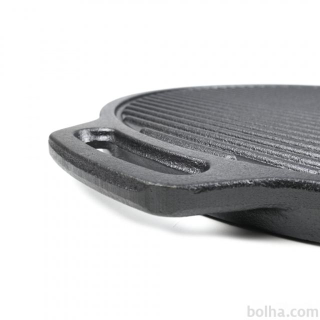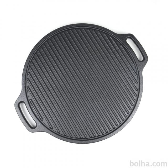Ploča od lijevanog željeza promjera 45 cm. Upotrebljiv s obje strane, gladak s jedne i rebrasti s druge strane. Može se koristiti na plamenicima ili na otvorenoj vatri.