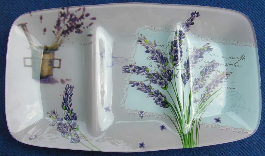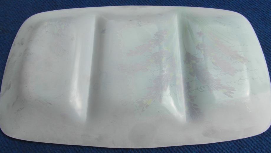 Pladanj sa pregradicama za prezentiranje tri vrste jela. Dimenzije 34,5 x 20,2 cm.