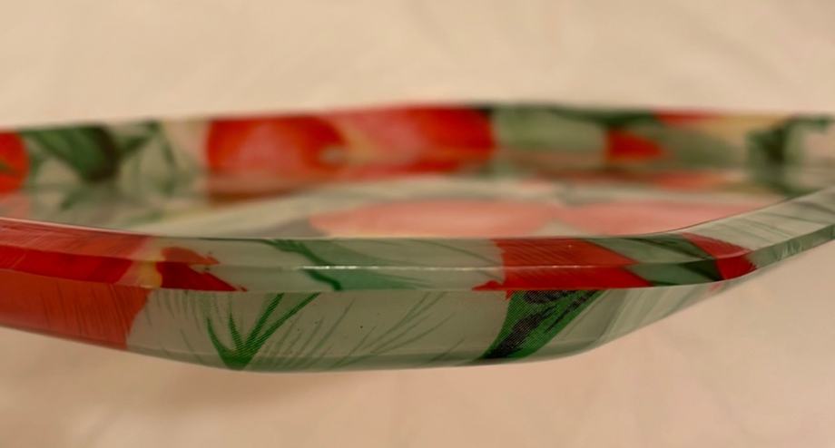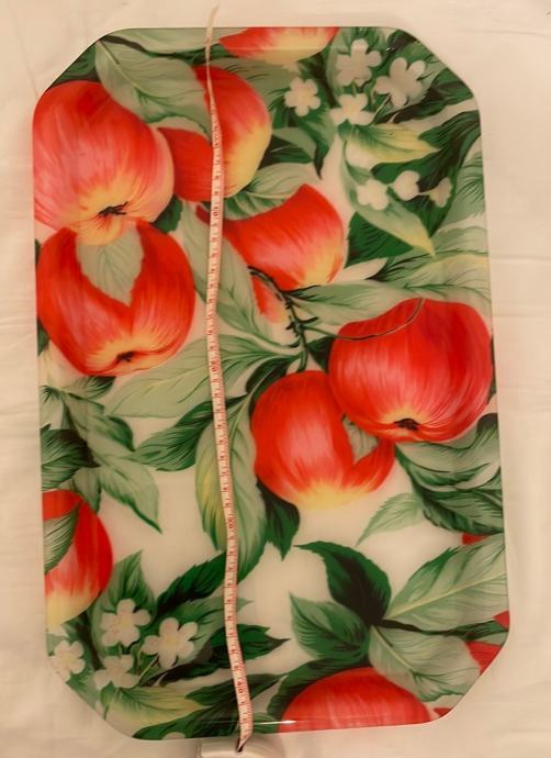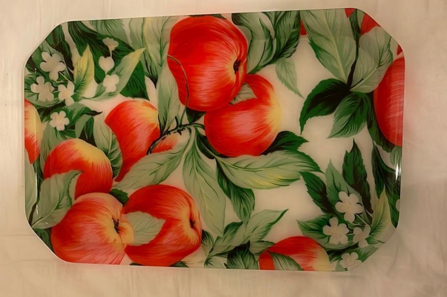 Prekrasan poslužavnik s motivima jabuke, od kvalitetne plastike, tvrd i otporan na udarce.