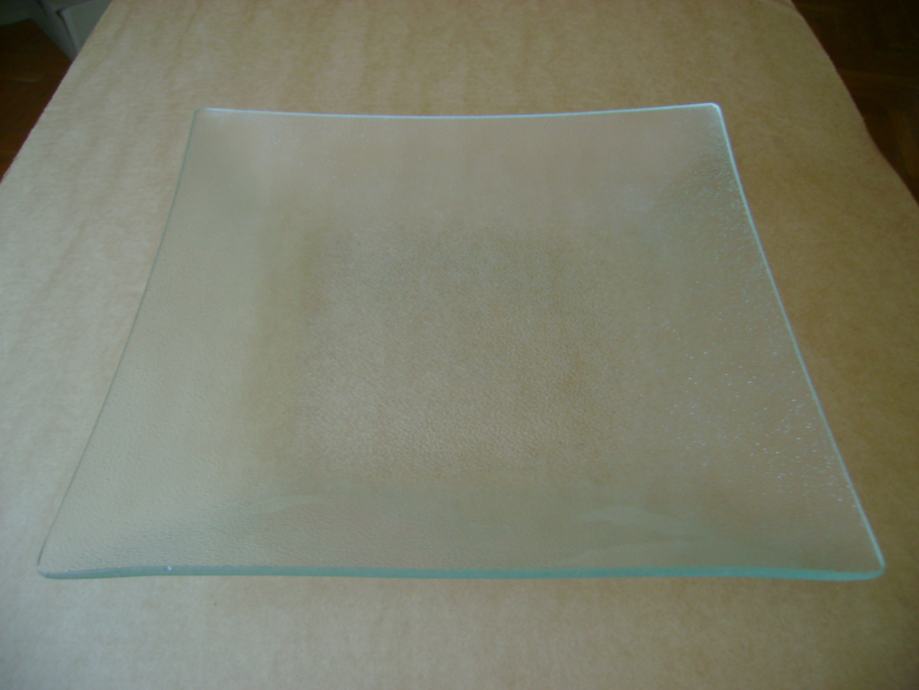 Staklena tacna za voće i slično - voćarica - cca 26 x 26 cm, visina 3,5 cm, odlično očuvana, bez ikakvih oštećenja - stanje je vidljivo na slikama.