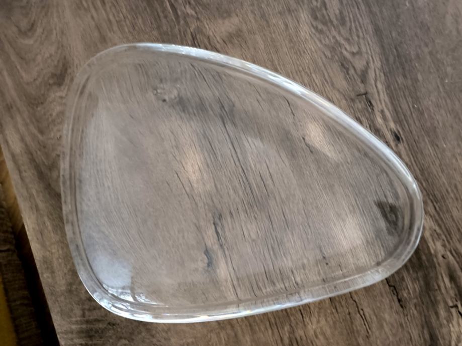 Stakleni pladanj (tacna), ima vrlo sitne ogrebotine po sredini. Cijena je prilagođena.