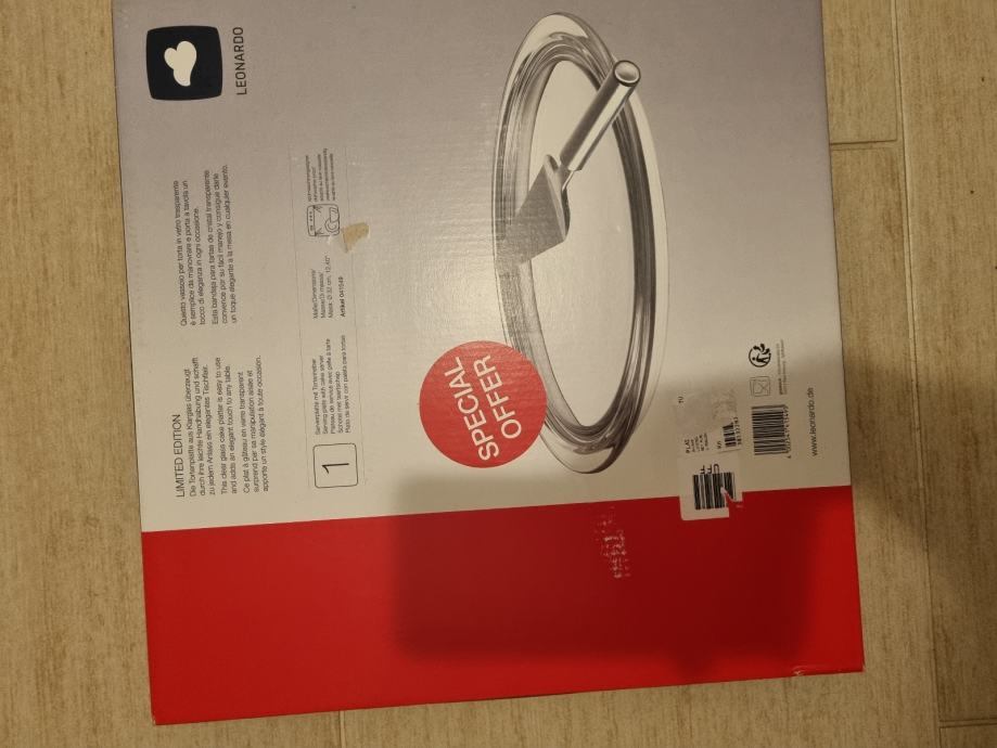 Prodajem nov stalak za tortu i kolače marke Leonardo, Limited Edition. Radi se o staklenom okruglom pladnju. Cijena 8€.