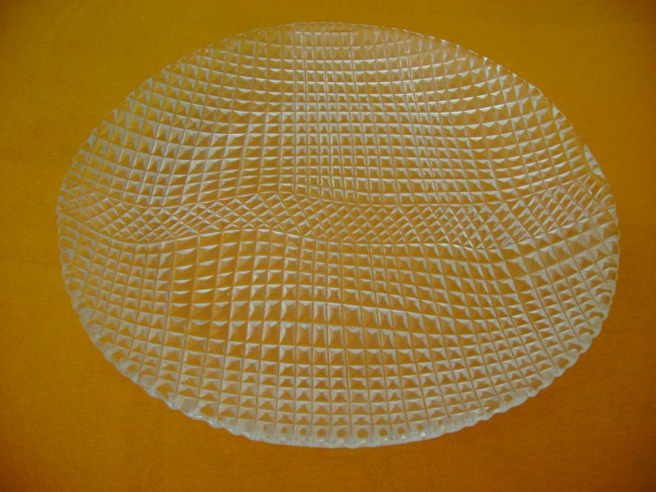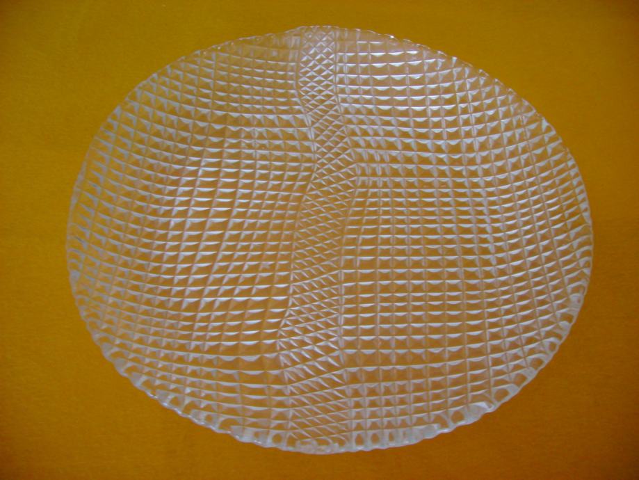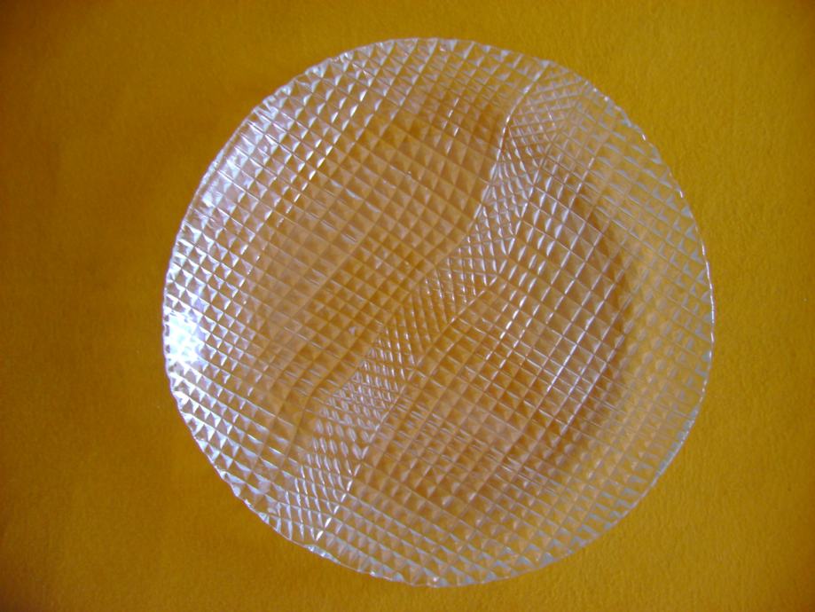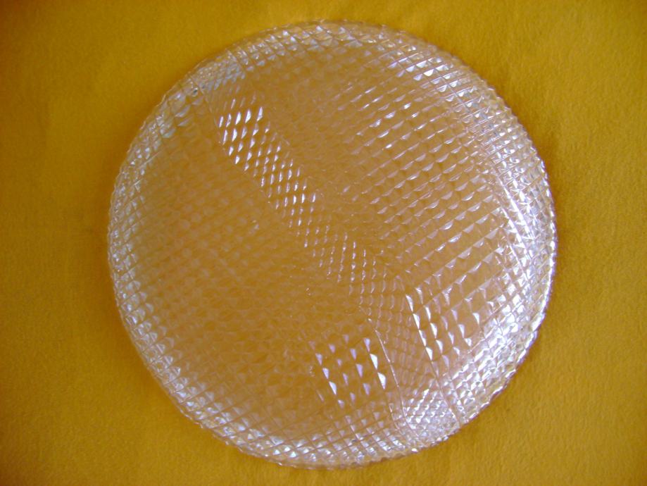 Stari stakleni pladanj promjera 28 cm, visine 3-3,5 cm, neoštećen, bez vidljivih tragova korištenja, odlično očuvan - stanje je vidljivo na slikama.