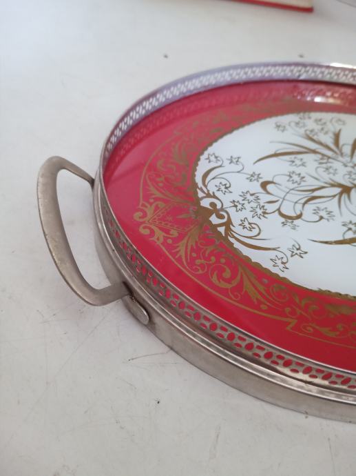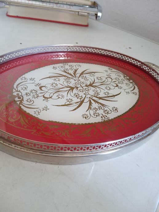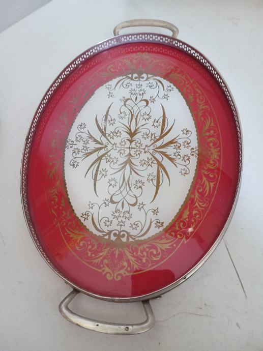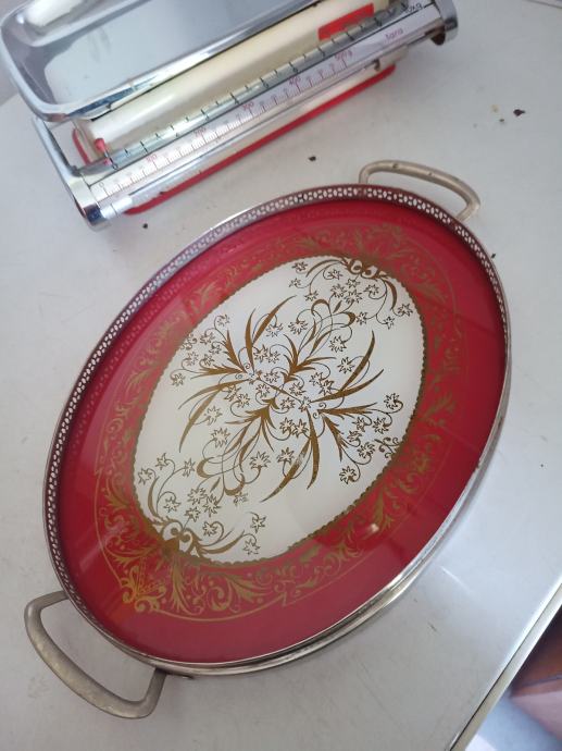 Stara ovalna tacna32x25cm sa ruckama u dobrom stanju
