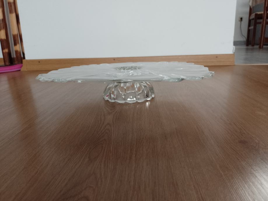 Lijepo dizajnirana. Širina 43 cm, visina 6 cm. U mojim oglasima imam još nekih tacni za kolače.