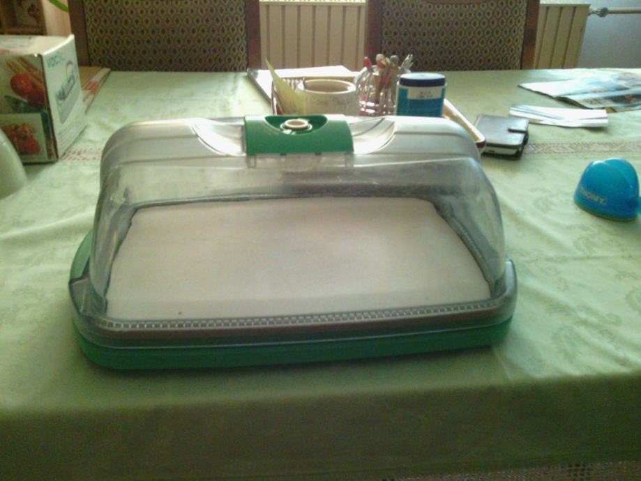 Prodajem vacsy tacnu sa zvonom malo korištena očuvana. Moguče vakumiranje kolača ili suhih narezaka.